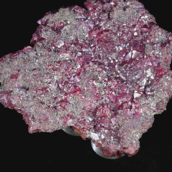 A remarkable, sparkling, solid mass of lustrous, burgundy-red octahedral crystals of cuprite with rich internal color that literally glows under direct lighting!. Dikuluwe Mine cuprites are difficult to come by – only six photos are presented in the Mindat gallery. This specimen was acquired in the mid-1980s and has remained uncirculated in a private collection since. Minor clipping is evident upon examination under magnification, but this is not readily apparent to the naked eye, nor does it diminish from the presentation. Both sides of this unique find are pictured.