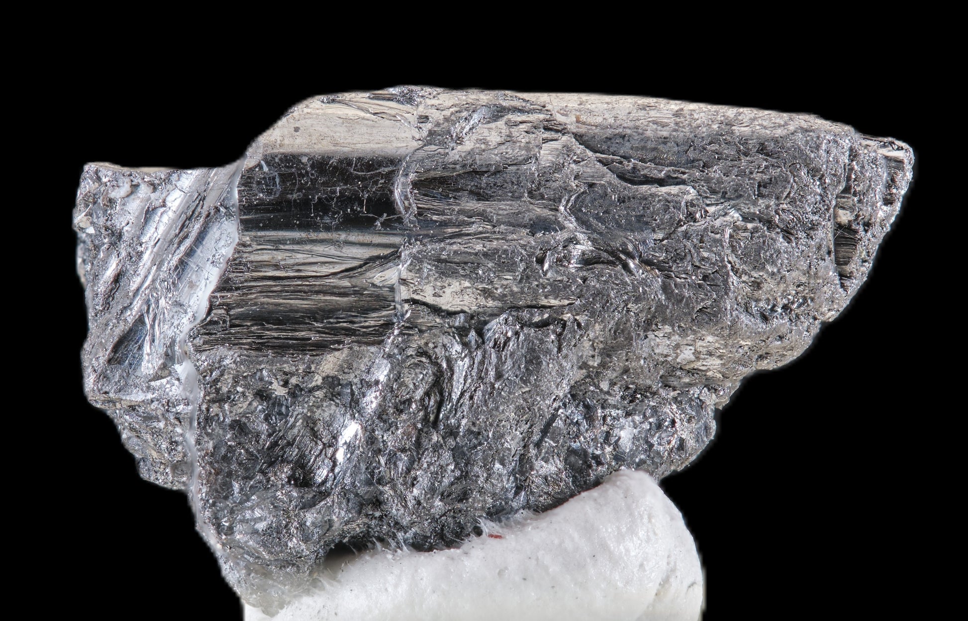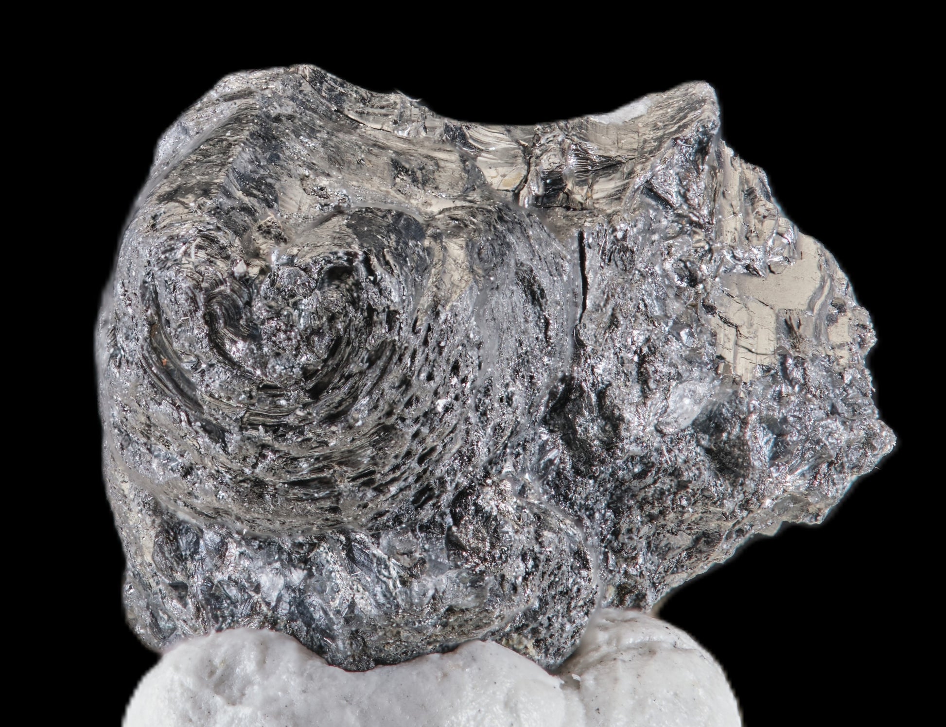 A roll of lustrous metallic-silver Cylindrite from the type locality. The "cylinder" is very evident. This is the only species of natural crystal with a cylindrical crystallography!