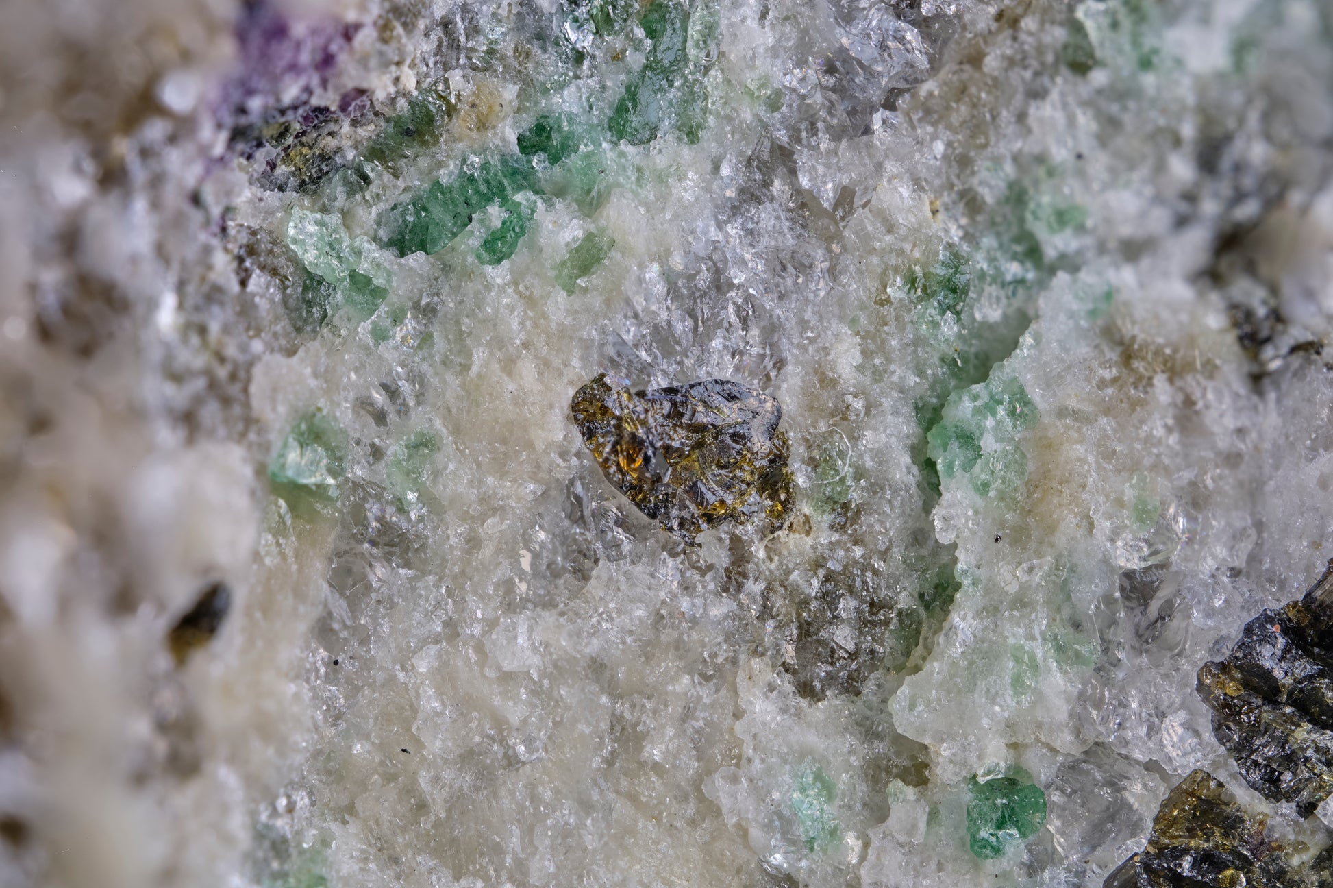 Emerald in Matrix with Fluor-Dravite, Fluorite, and Xenotime, Crabtree Mine, Spruce Pine, Mitchell County, North Carolina, USA