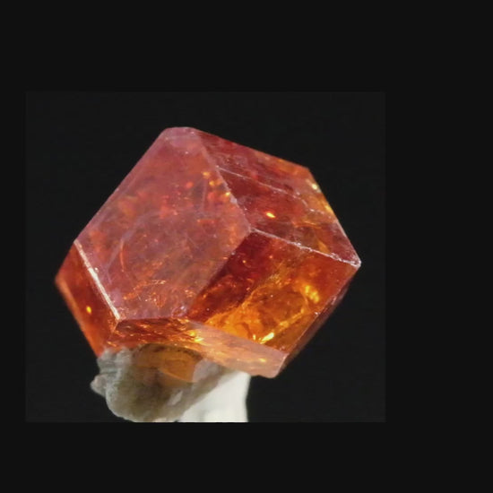 A stunning thumbnail/micro specimen from this classic locality that is a must-have for any serious collector. This grossular garnet crystal is gorgeous, with bright-orange color, glassy luster, flashing, mirror-bright faces, gemmy translucency, and eye-catching fire. It is a nearly perfect dodecahedron with exquisite, beveled trapezohedral faces. This is from an old collection, and specimens of this color and gemminess are to be found now.