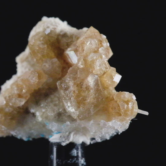 Gemmy, glittering light tan grossular garnet crystals are attractively paired with translucent to transparent, colorless to white diopside prisms from the famous Eden Mills, Vermont, occurrence. The grossular crystals present superb luster with sharp rhombic dodecahedral habit. The chaotic “jackstraw” arrangement of the impossibly slender, long prismatic and highly lustrous diopside crystals are fascinating. It displays attractively all around, as seen in the video. Some contact. Mounted in a clear acrylic perky box.