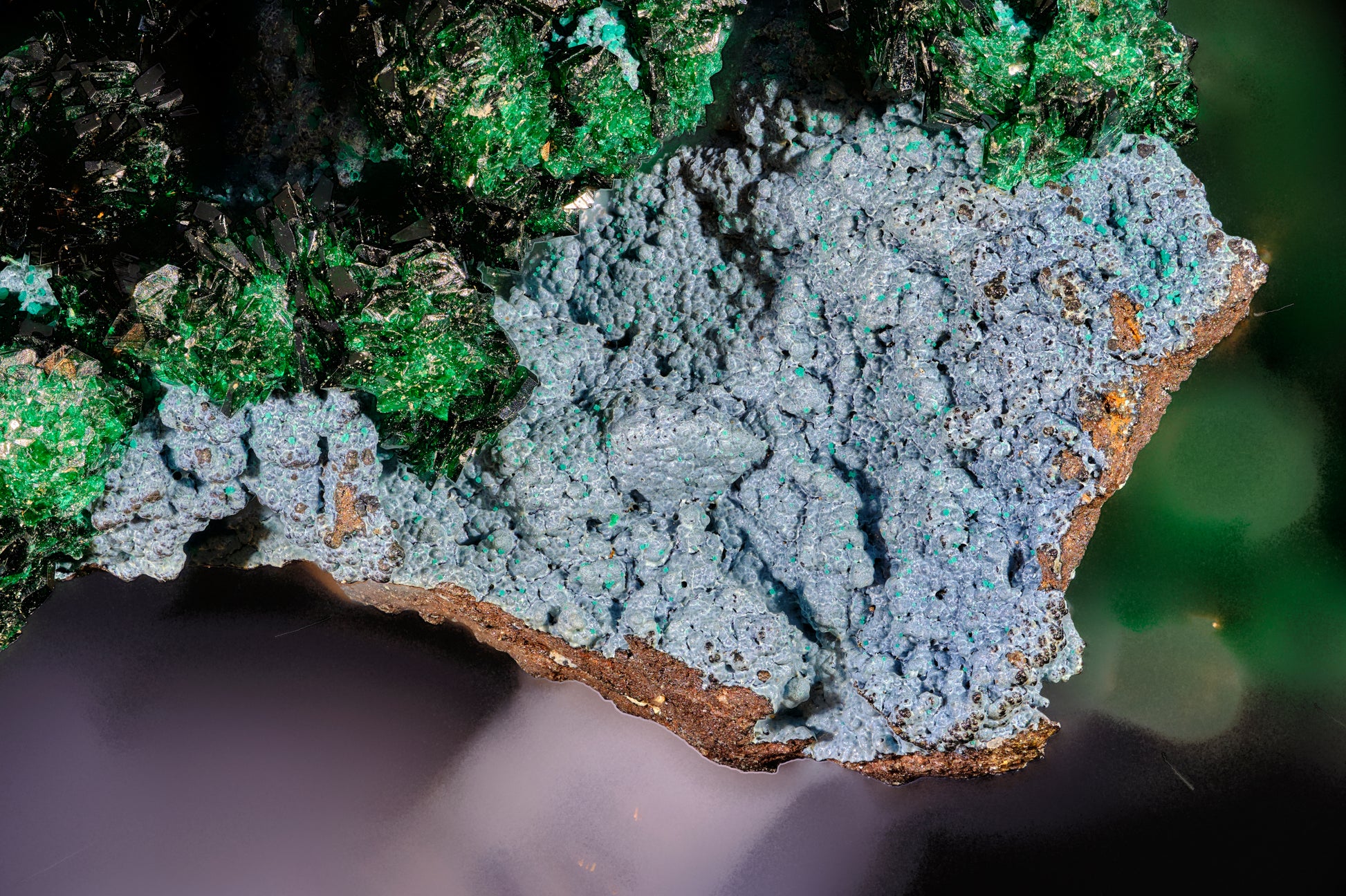 Please note: the field of view (FOV) for the Plancheite-Pseudomalachite close-ups is on the scale of a centimeter or less.