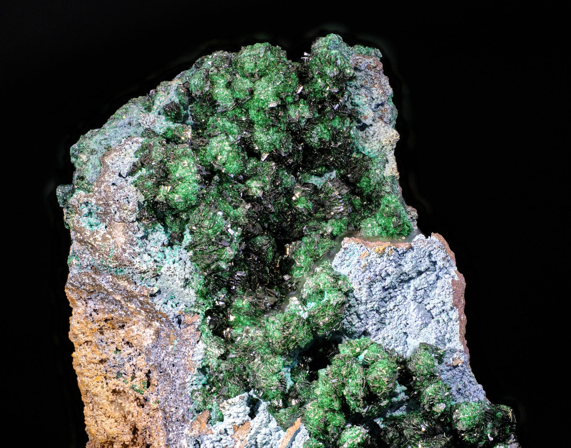 Libethenite with Plancheite and Pseudomalachite, Kambove Mine, Katanga, DRC