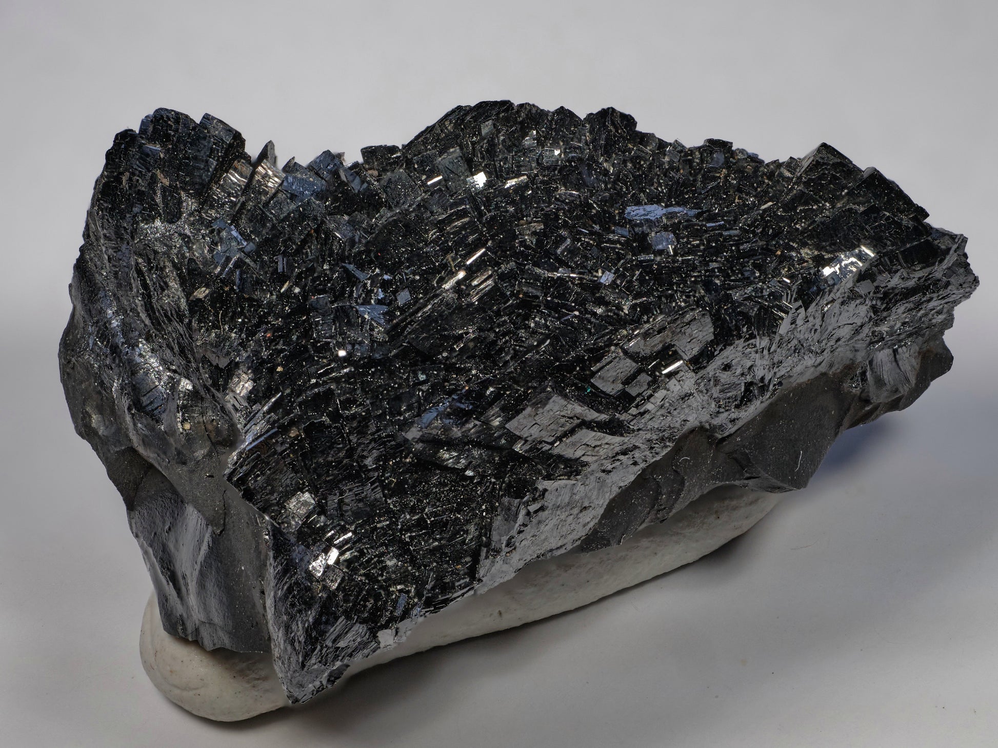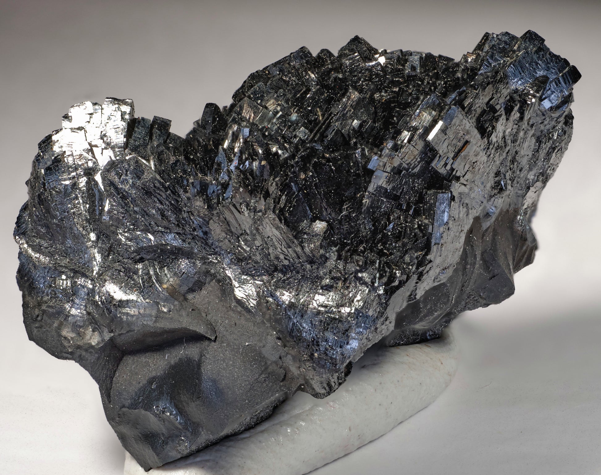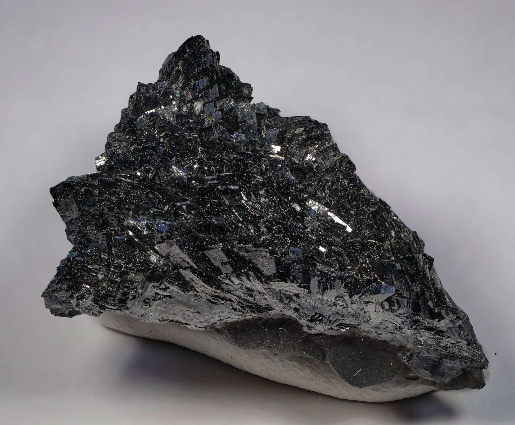 An exquisite thumbnail of sharp, well-crystallized, lustrous, jet-black sprays of manganite crystals, presenting radiating, elongated “chisel point” terminations. This is a classic find from the world-class N’Chwaning deposit and a highly desirable addition for any consummate collector of this iconic locality.