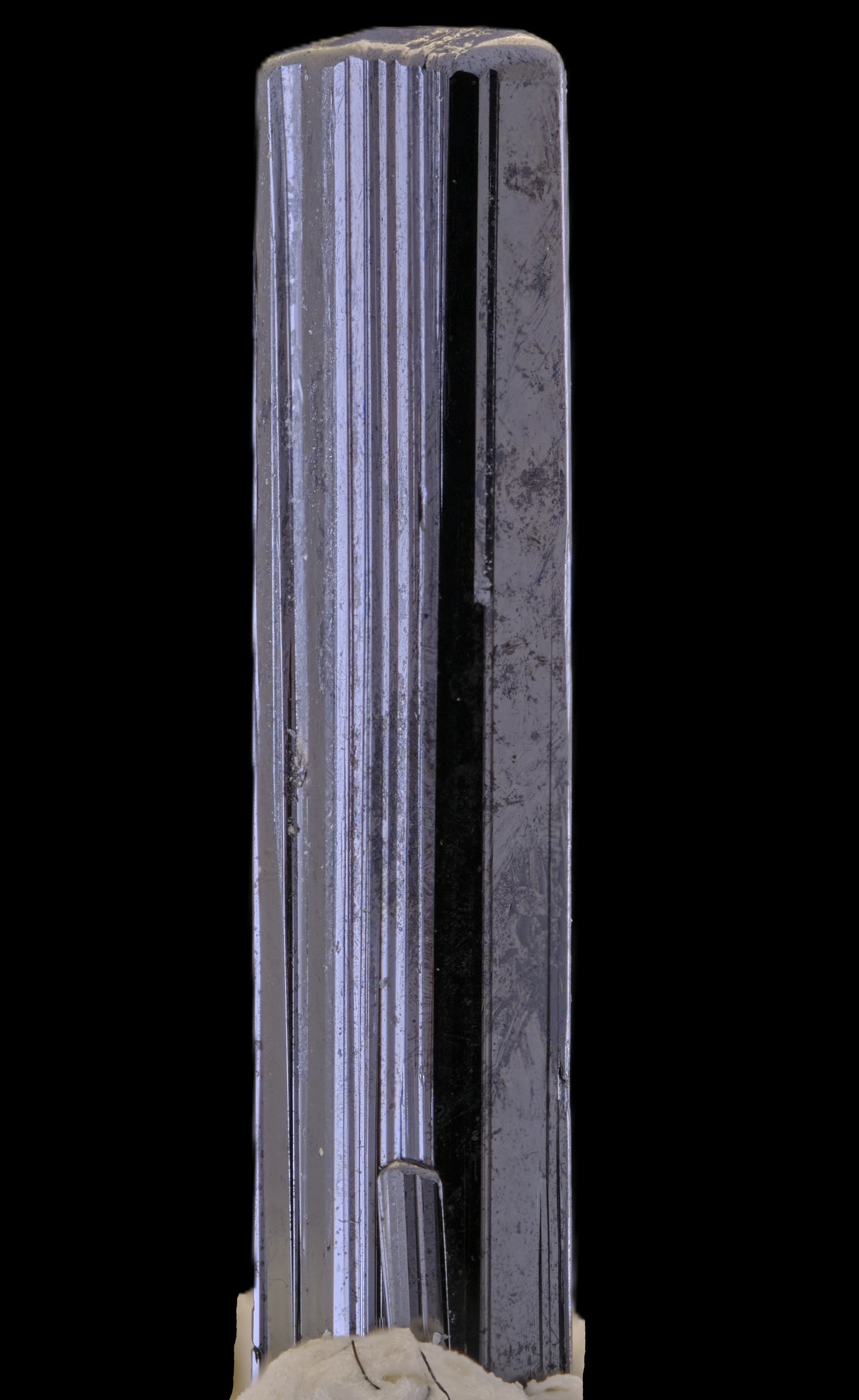 Pseudobrookite (Fe2TiO5) is a rare mineral found in only a few locations in the world. This micro/TN presents a long, slender, delicate acicular needle with lustrous faces, cool striations, and an interesting termination.