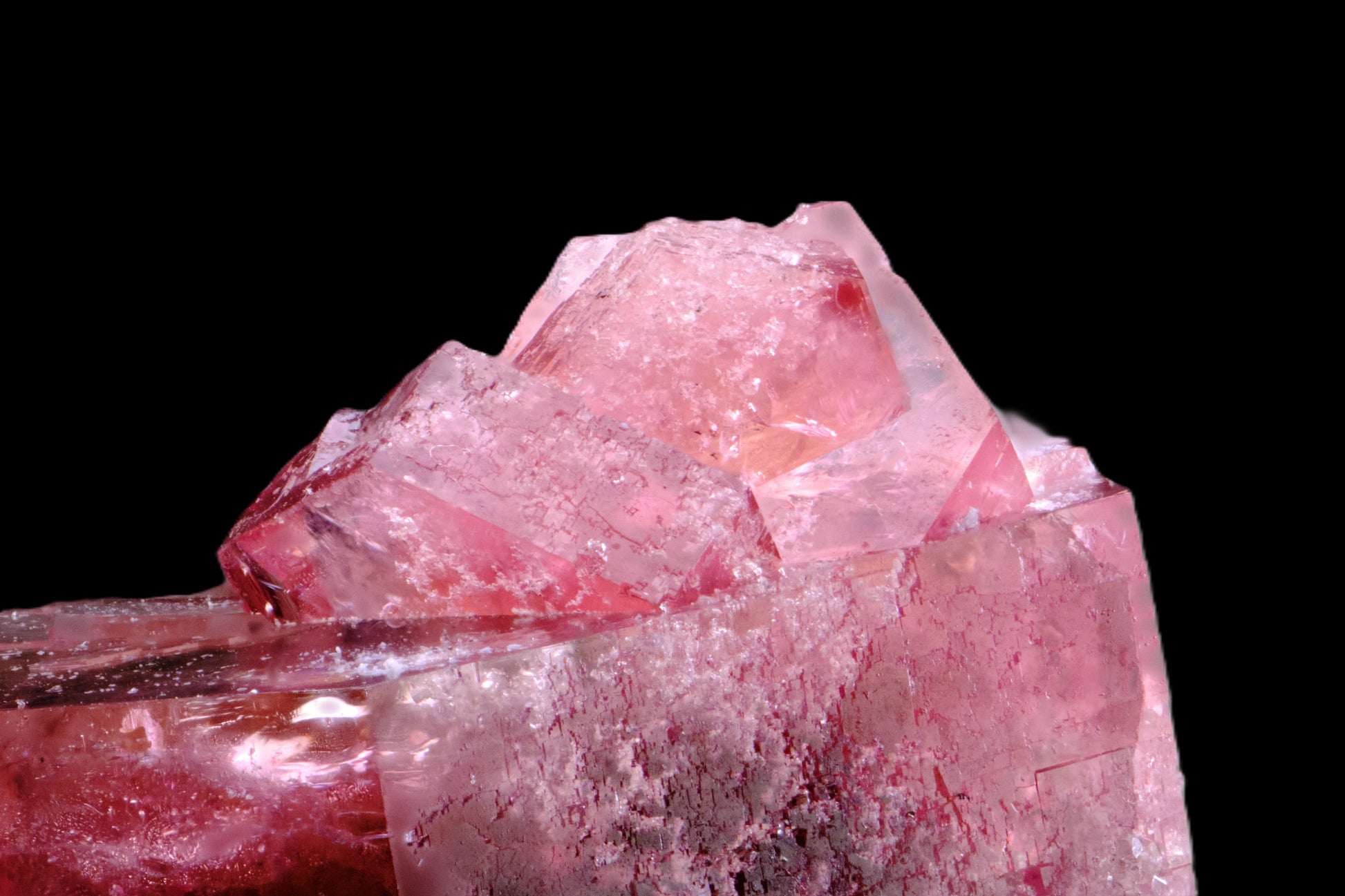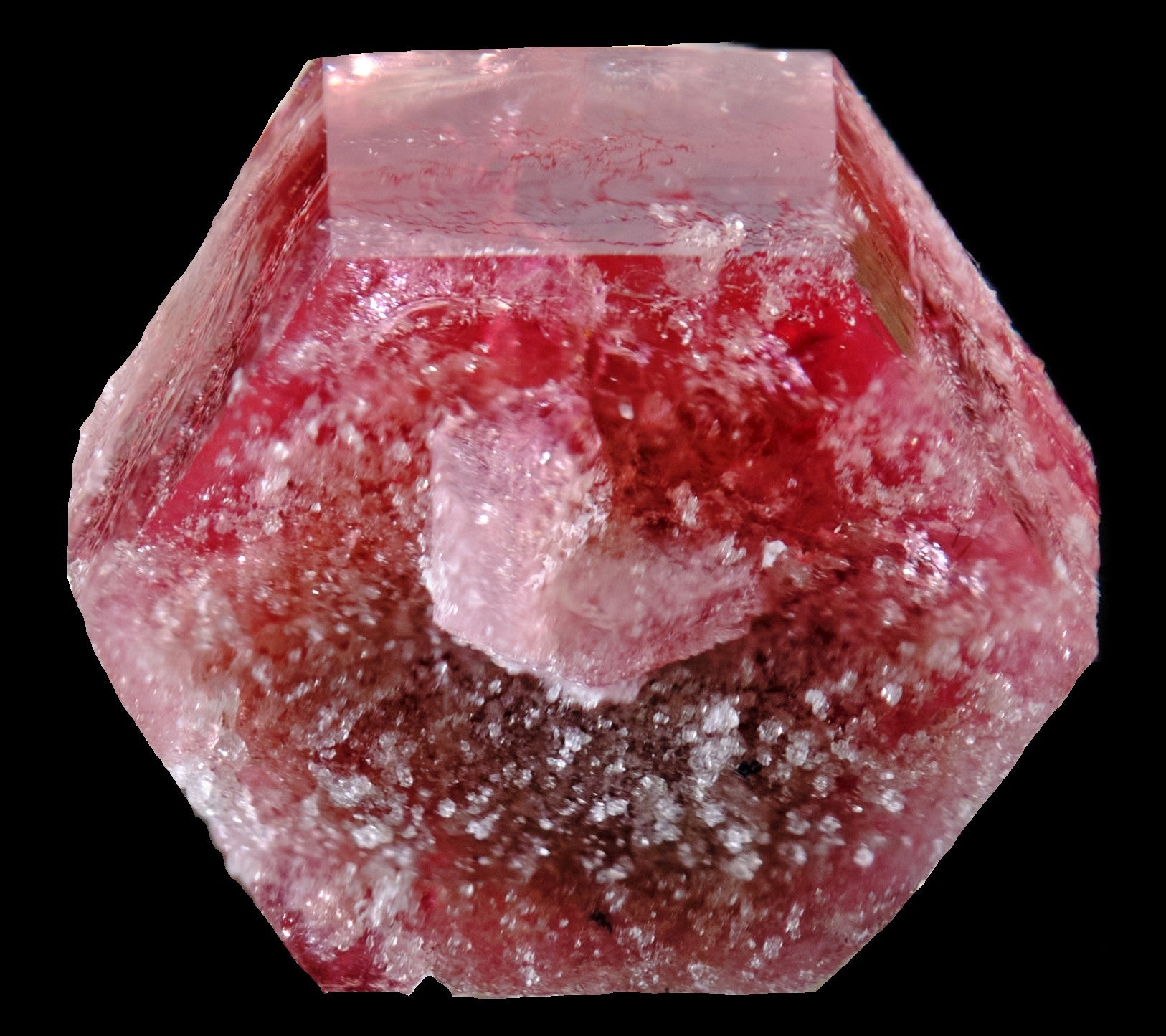 A striking, deeply translucent, doubly terminated red beryl presenting interpenetrating crystals on both terminations, an extremely unusual occurrence. Not only is red beryl very rare, with only three known localities in the US, but finding such interpenetrating twins is rarer still. The smaller, very gemmy crystals are comprised of a triplet - all demonstrating the only known twin geometry! The crystals are complete all around, but for one bird with sharp edgework and textbook habit. Faces are lustrous, with en-echelon hexagonal impressions. Images have been backlit to highlight internal structure and translucency. This piece, along with a vanishingly few others, was extracted from a pocket on October 4th, 2024 by miner Frank Stalling. The specimen comes with a certificate of authenticity. This specimen is a true collector’s item.