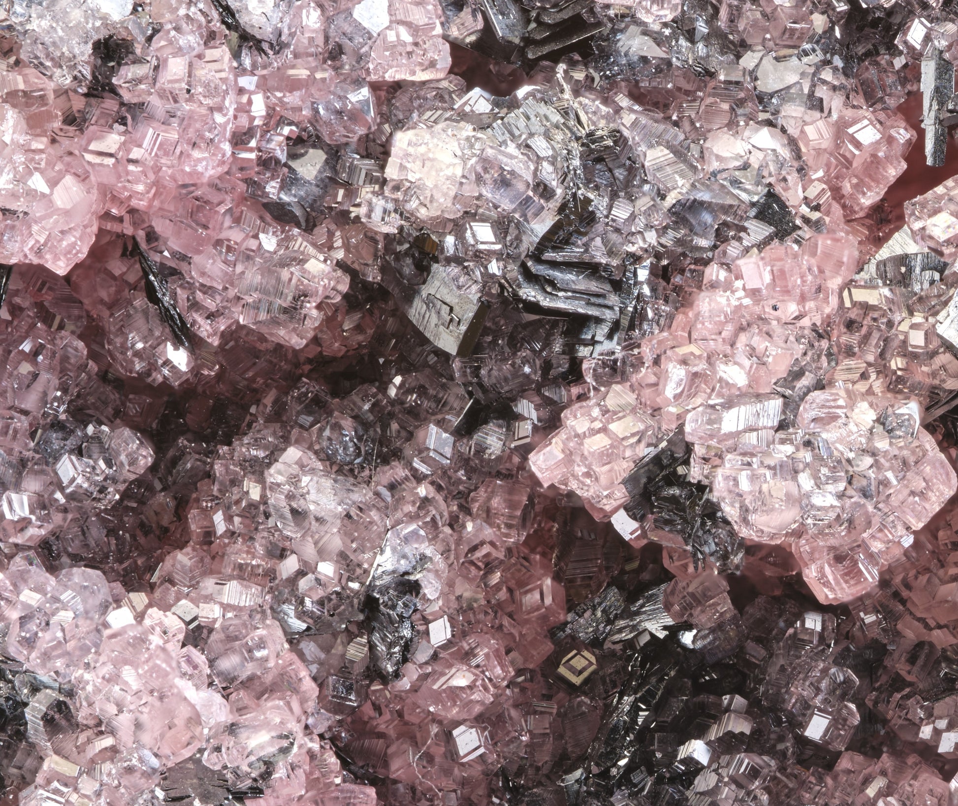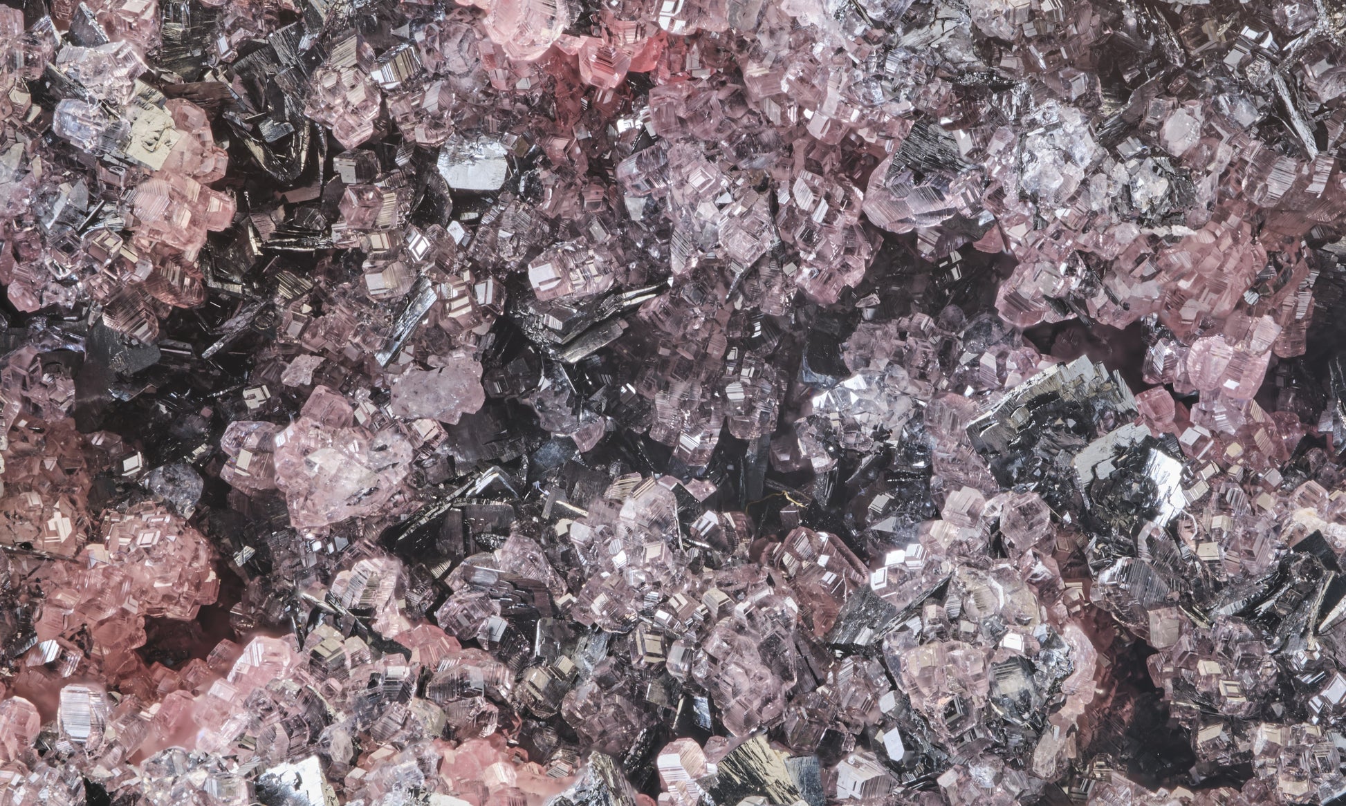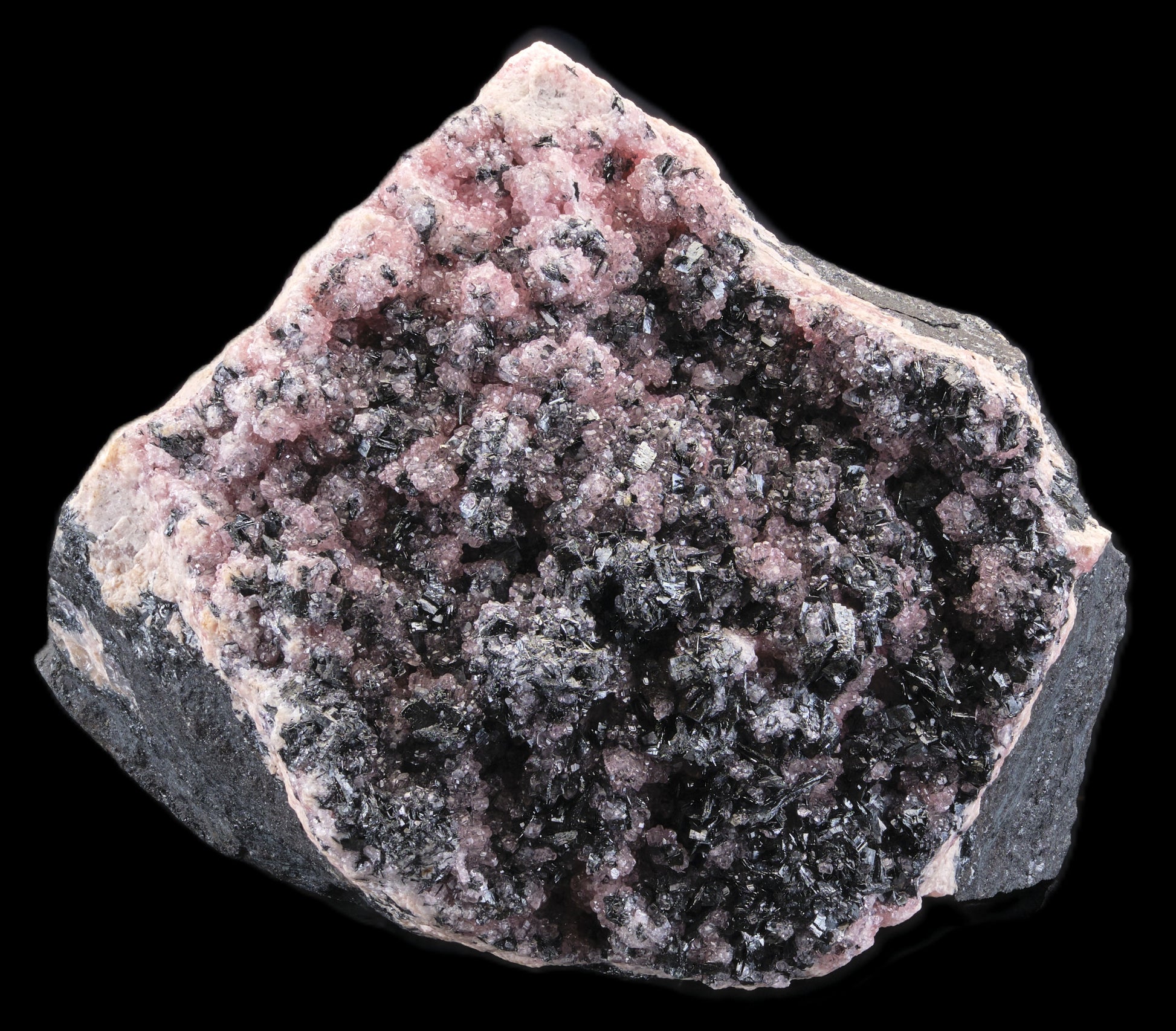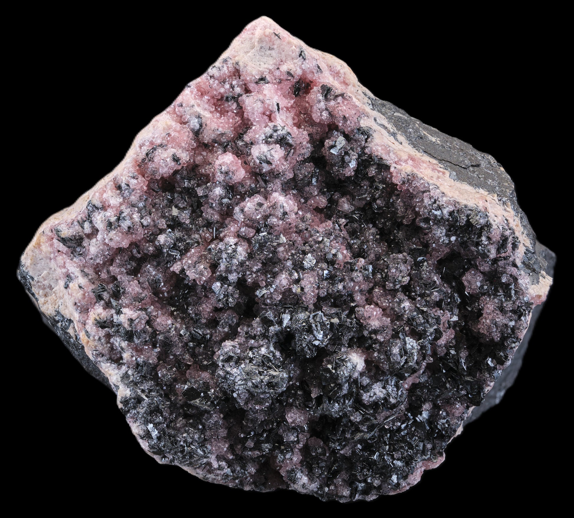 Rhodochrosite on Manganite, N’Chwaning Mine, Kalahari Mn Field, RSA
