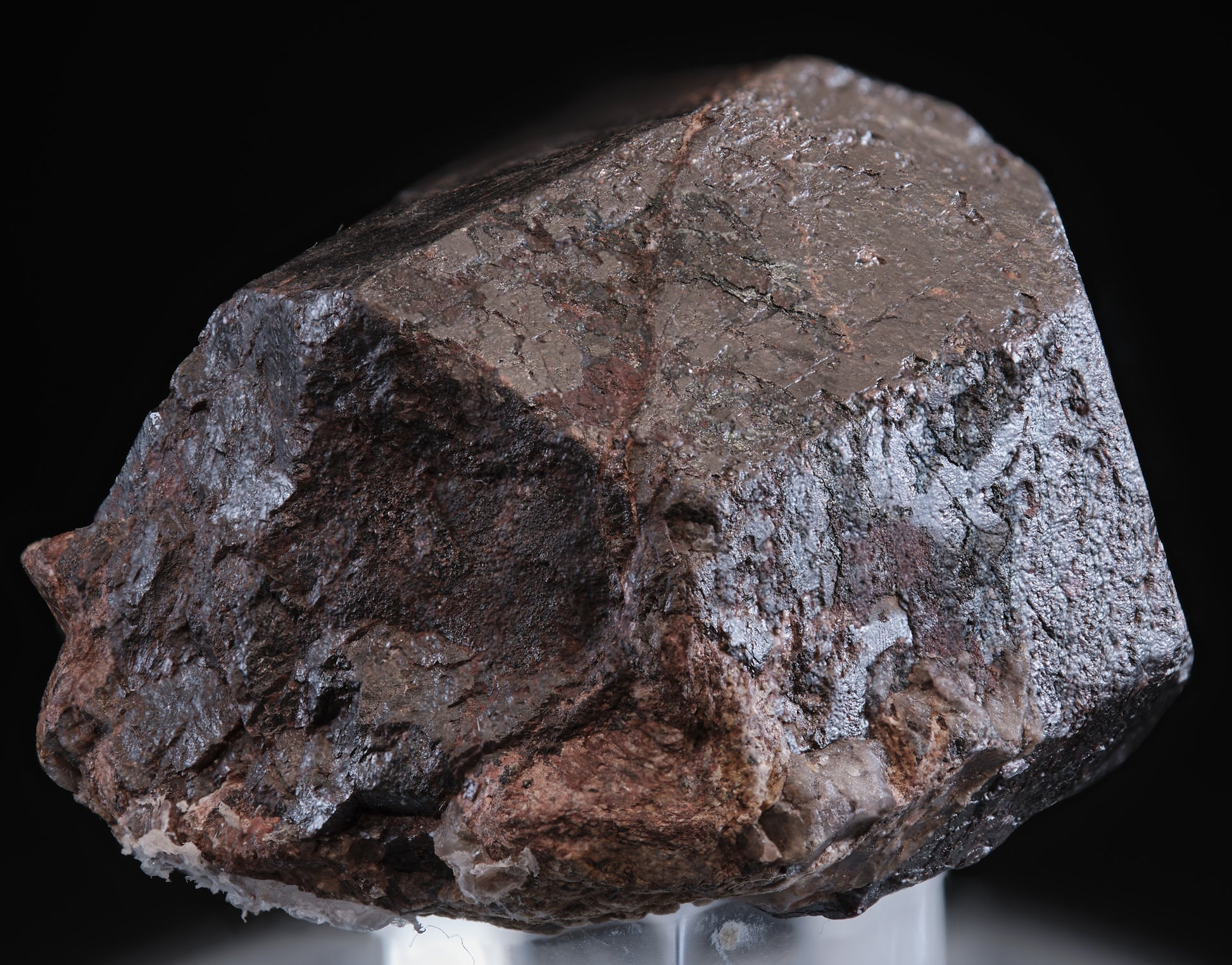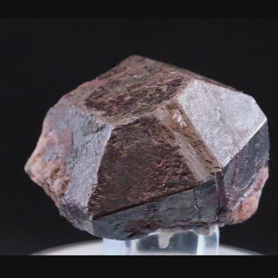 A large and well-crystallized, silvery metal-red rutile from the world-class Graves Mountain locality (The Mineralogical Record, V 16, No 6, pp:443-458). The rutile crystal presents textbook habit on the presentation aspect front and sides, with contacting in the back. Interestingly, the base presents terraced twin gliding as a potential consequence of deformation as the crystal was formed. The locality is largely closed to collecting but for one sanctioned dig per year, with finds of this size and quality very infrequent.