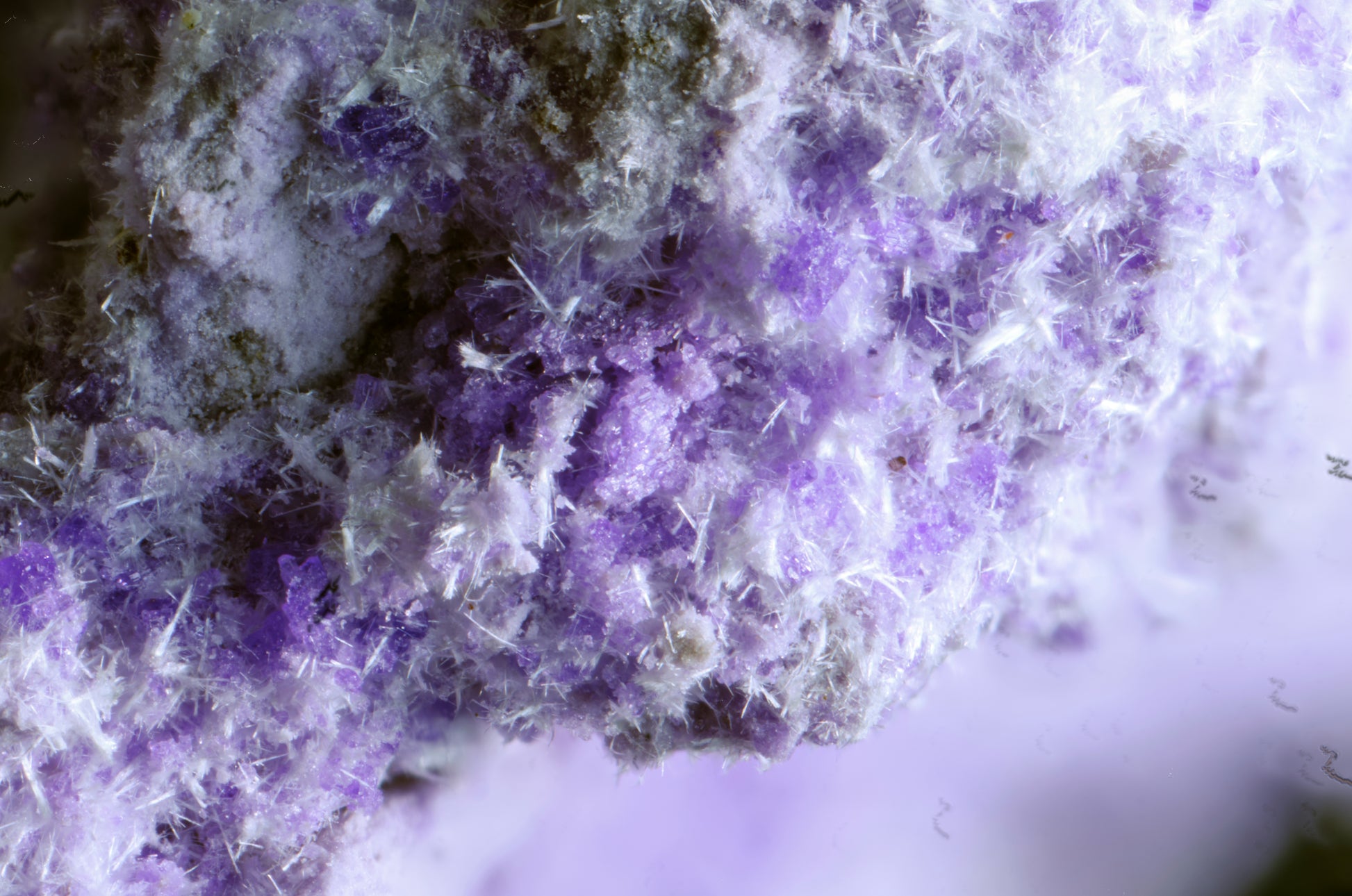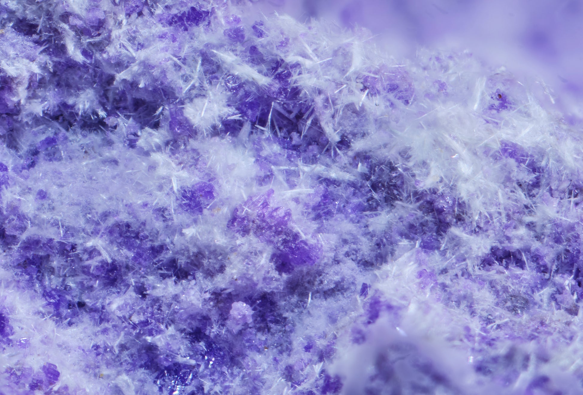 A richly appointed - and rare - combination piece featuring bright lavender microcrystals of sugilite paired with starkly contrasting, glassy white, acicular pectolite. Sugilite is a rare and exceptionally beautiful K-Na-Li-Fe-Mn-Al-Zr-silicate with the finest specimens sourced from the world-class Wessels Mine. Most folks are familiar with pectolite as the semi-precious gemstone Larimar. It is reported that pectolite is quite rare from the Kalahari Mn fields, let alone its combination association with sugilite.