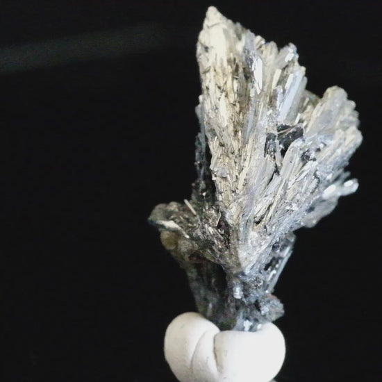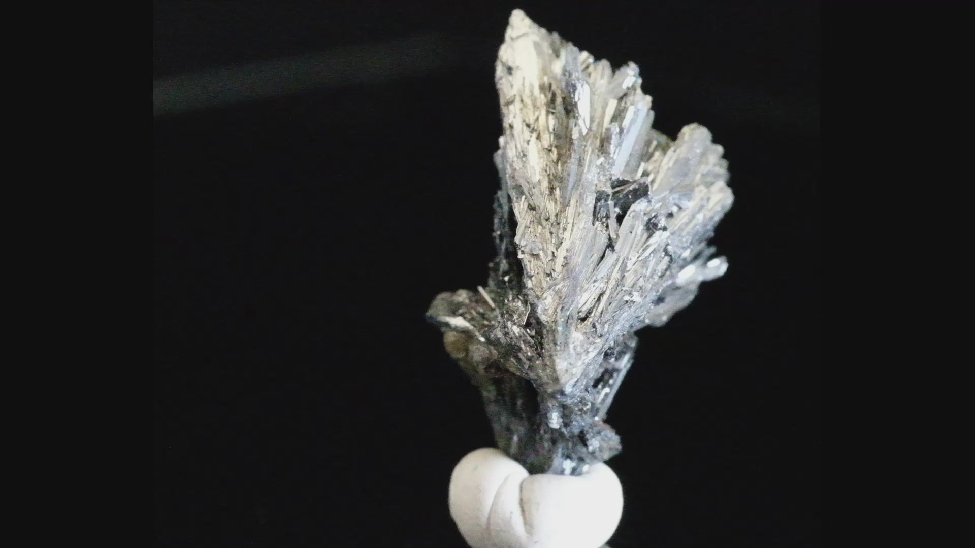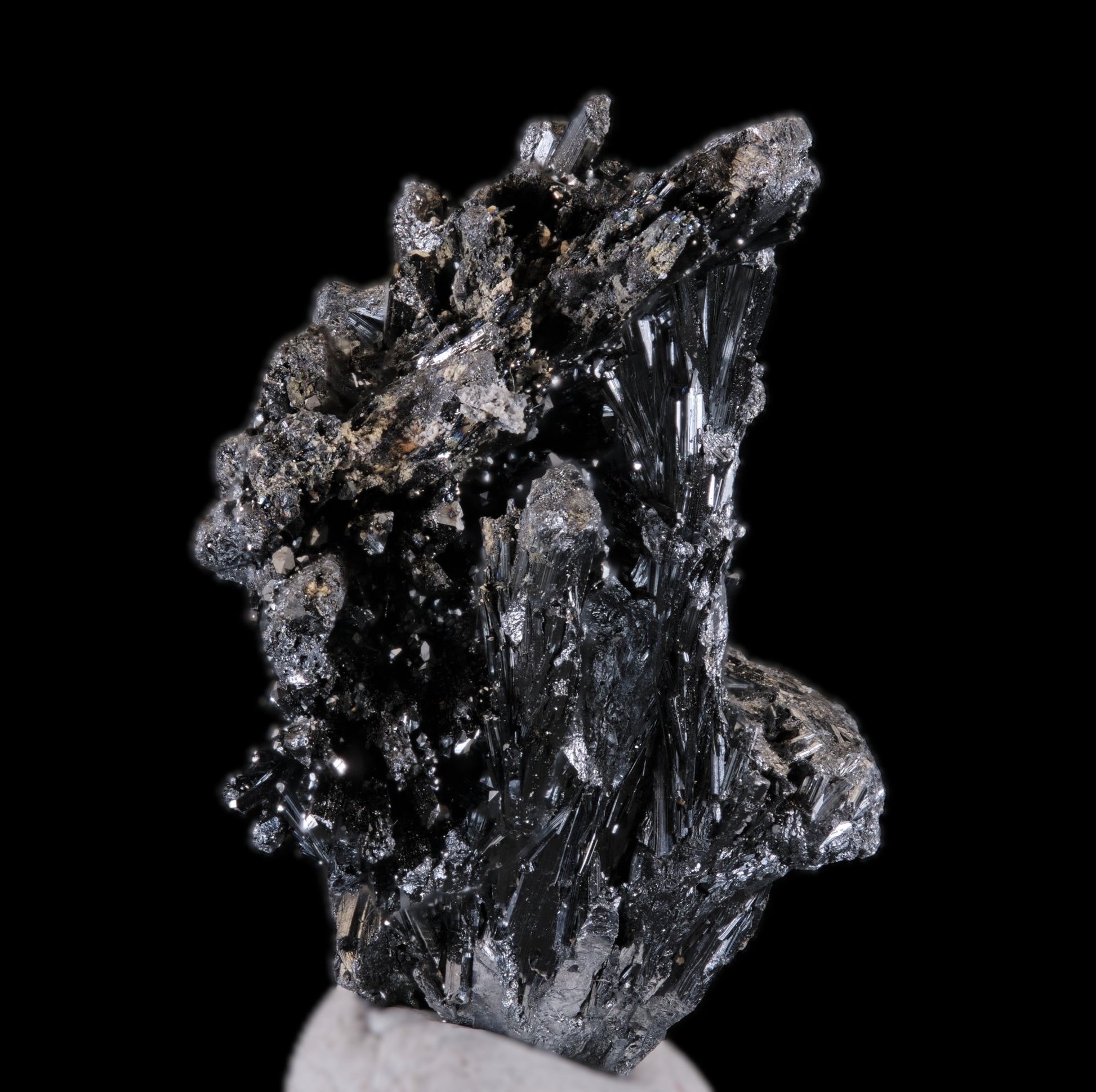The Spanish conquistadors started mining at the San Martin Mine in 1555, and indigenous populations had been mining since antiquity. A choice 360-degree specimen, complete all around, this unique TN reminds me of a comet in its presentation, with lustrous, silver-grey sprays coalescing at a point. Stibnite, very popular amongst collectors, is the primary ore of Antimony, a strategic metal with widespread applications.