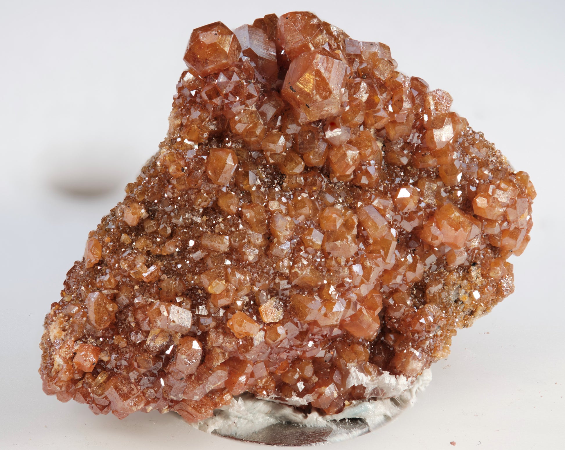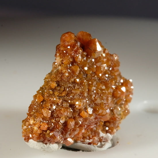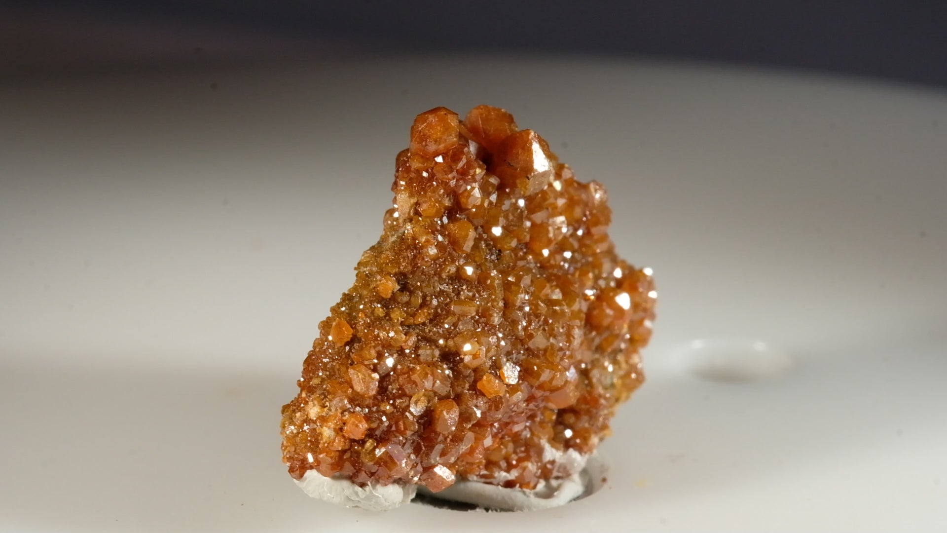 A richly appointed, sparkling specimen featuring the classic hexagonal-pyramidal habit and orange-red coloration of the J.C. Holmes locality. All presentation sides of this eye-catching specimen are covered in gemmy, lustrous Vanadinite crystals. The largest crystals form the apex of the piece. This “old-timer” is sourced from a forty-year-old collection.
